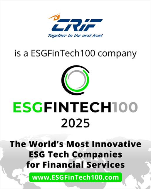 CRIF, a global company specialising in credit bureau and business information systems, analytics, outsourcing and processing services, as well as advanced digital and open banking solutions, has been named in the ESGFinTech100 for the second year running. This recognition highlights CRIF’s commitment to driving sustainability in financial services through its combined solutions: ESG Analytics and Synesgy.
